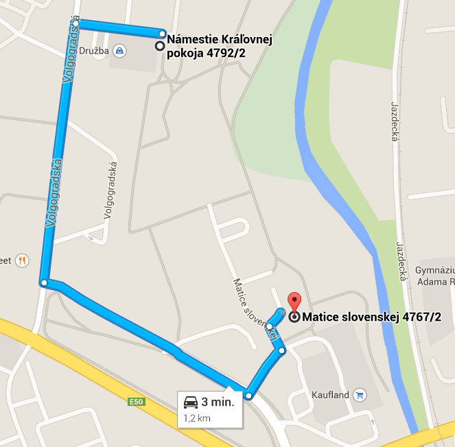 Ako sa dostanete pešo zo starej adresy na novú vysvetľuje obrázok vľavo. Ako danú trasu absolvujete autom zistíte z obrázka vpravo.